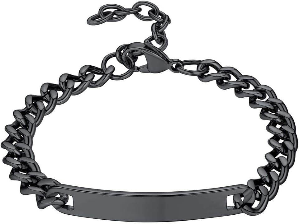 strong>⭐ PACKAGE ⭐1*ID Bracelet, 1*Velvet Pouch, 1*GoldChic Jewelry Box🔥 WHY choose ID Bracelet from GoldChic Jewelry? 🔥 👍👍Made of 316L stainless steel, 100% harmony for skin, hypoallergenic, allergen-Free, nickel-Free, cadmium-Free, lead-Free. ✍✍ CUSTOMIZED ENGRAVING: You can design it with your choice of engrave any Encouraging Words or any other you want, so as special date, mantras, name of loved one, favorite city...Please note: The engraving preview is just a guide and we may adjust the size of your text for ideal finished product if needed. 💝💝 Unisex design, fits most men and women. Can choose two as couple bracelet and engrave important date or other between lovers. 👍 This sturdy chain bracelet features a secure clasp. Easy to put on and take off.🚀 Two Style ☆ 1, Cuban Chain Bracelet with Fixed Length ◀ 18+5cm (7+2 inches) ◀ 19cm (7.5 inches)◀ 21cm (8.3 inches) ★ 2, Stretch Watch Link Bracelet◀160mm(6.3inches) - 210mm(8.3inches) 🚀 Two Nameplate Width Options▷ 8mm▷ 10mm 🚀 Three Color Options💿 316L stainless steel 📀 18K gold plated on stainless steel metal (5 layer high polished plating) ⚫ Black plated on stainless steel metal (5 layer high polished plating)